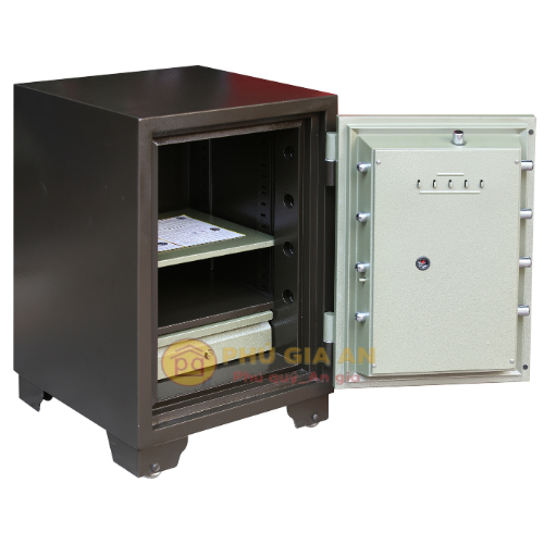 - Chất liệu: Khung vỏ thép 2 lớp + vật liệu chống cháy cao cấp, tạo thành khối vững chắc, khác biệt với két đổ cát thông thường.
