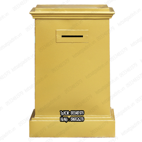 - Mặt lưng két có lỗ nhét tiền nằm ngang, chéo xuống, bên trong có tấm răng cưa chống khều tiền.