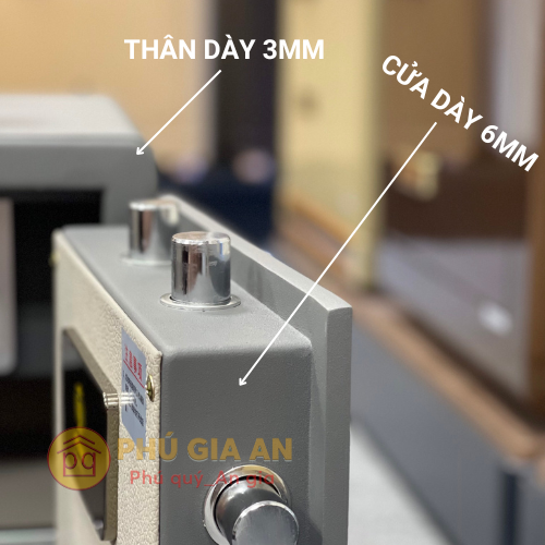- Thân két làm từ thép đúc nguyên tấm với cánh két dày 6mm, thân két dày 3mm giúp chống cưa, cạy phá và chống cháy, bảo vệ tài sản an toàn.