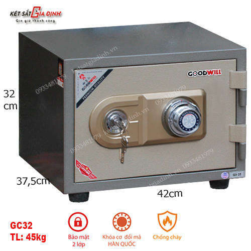 Két sắt mini Goodwill GC32 khóa cơ có báo động