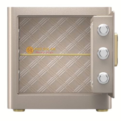 - Không gian lưu trữ: Rộng rãi, phù hợp cho tài liệu, tiền bạc và đồ trang sức.Dưới đáy là ngăn hầm bí mật có thể cất giữ đồ khá hay. Két được trang bị đèn led sẽ tự động soi sáng bên trong khi mở cửa, giúp việc lấy đồ tiện lợi hơn.