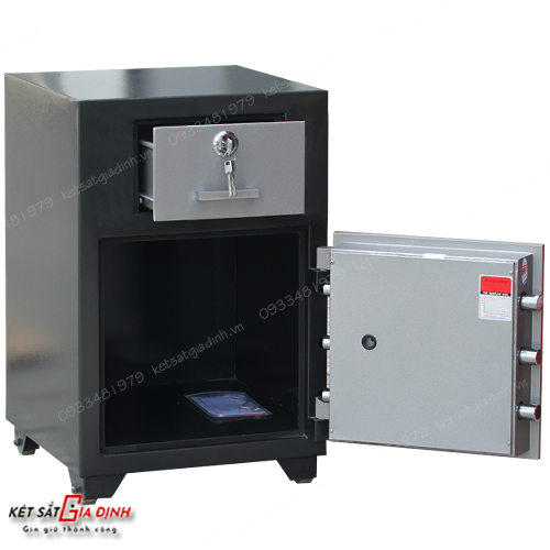 - Cánh cửa ngăn trên Thép tấm dày 8mm, đảm bảo chống phá hiệu quả.