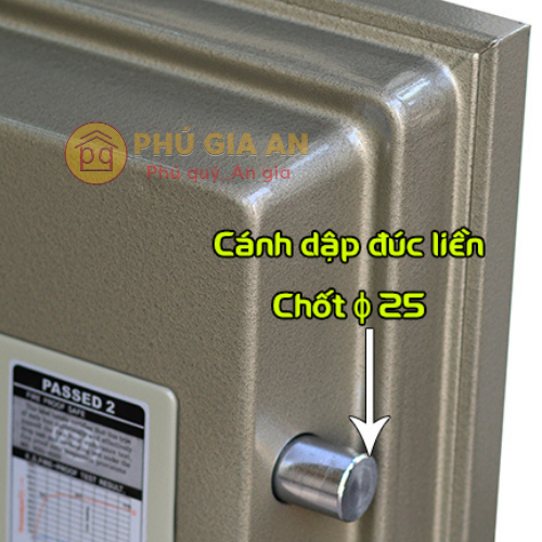 - Cánh cửa và thân két: Dày, thép 2 lớp với ruột đúc đặc kết hợp vật liệu chống cháy cao cấp đạt tiêu chuẩn quốc tế (CE, ISO, SP, JIS). Cánh cửa có hệ thống chốt an toàn, thẩm mỹ, giúp tăng độ chắc chắn và khả năng chống cạy phá.