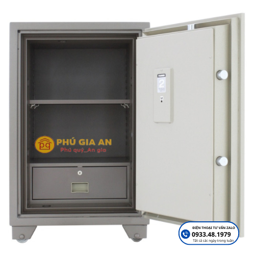 - Hệ thống khóa cơ đổi mã được bao bọc bởi một vòng thép, hạn chế tầm nhìn của người khác, chỉ cho phép người mở két quan sát mã số. Người dùng có thể cài đặt từ 1 đến 3 cặp số, kết hợp với ổ chìa khóa chính để tăng cường độ an toàn.