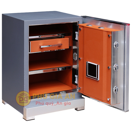 - Cửa két trang bị chốt đa điểm trên cả 4 mặt, tăng cường an toàn.Có thể bắt vít cốđịnh vào tường, chống di chuyển