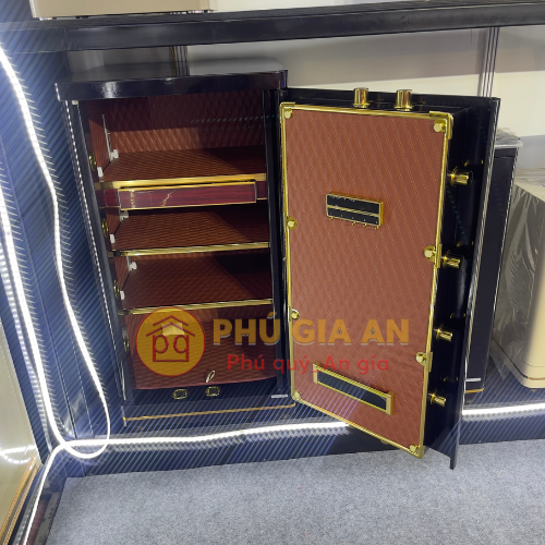 - Khoang chứa 3 ngăn lớn, phù hợp cất giấy tờ, tiền bạc, vật có giá trị . Hộc kéo bọc nhung dành riêng cho trang sức 1 đợt chia ngăn di động . Ngăn hầm bí mật ở đáy két, sử dụng khóa chìa cơ riêng