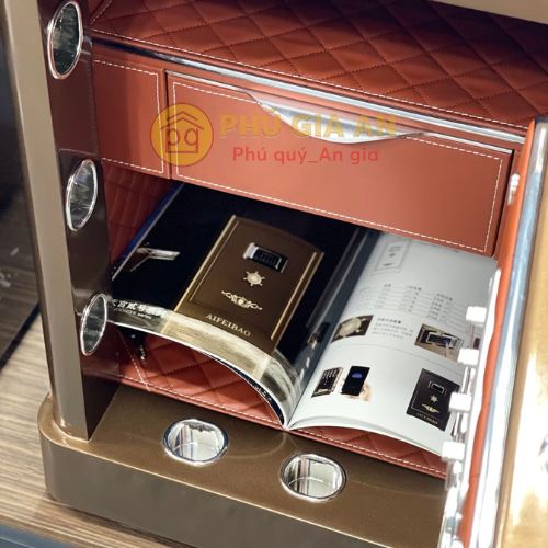 - Nội thất sang trọng với sơn Nano phủ bóng 3 lớp, vách ngăn và thành két bọc da PU cao cấp, chia thành nhiều ngăn bao gồm ngăn trang sức và ngăn bí mật.