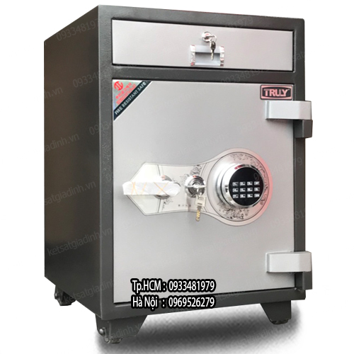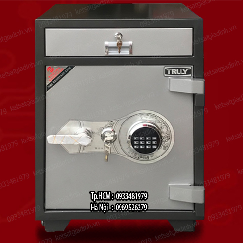- Ngăn dưới:01 khóa chìa bi + 01 khóa điện tử Led tròn đời mới, bảo mật cao, cài đặt mật mã lên tới 16 số, dễ sử dụng.Tay nắm ngang giúp đóng/mở két thuận tiện hơn.