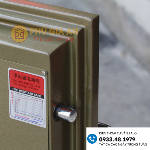 - Khóa cơ chống dò mã - độ chính xác cao, sai lệch không quá 1%, có thể cài đặt mã 1 số hoặc mã 3 cặp số, thao tác quay nhẹ nhàng, có vành che chống nhìn trộm mã khi mở két.