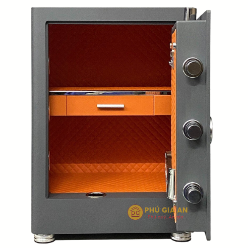 - 3 lớp bảo mật: Kết hợp khóa chìa, vân tay và mã số điện tử (phải sử dụng chìa khóa, vân tay và mật mã để mở két).