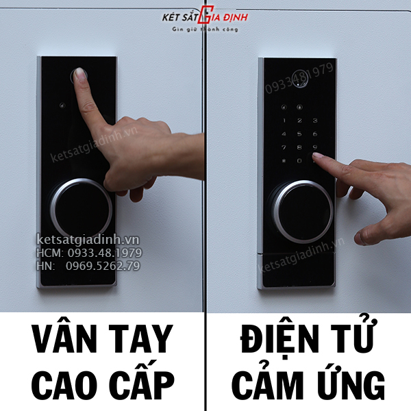 - Công nghệ khóa vân tay hiện đại với khả năng nhận diện đa điểm, lưu trữ lên đến 99 dấu vân tay, giúp mở két nhanh chóng và an toàn.