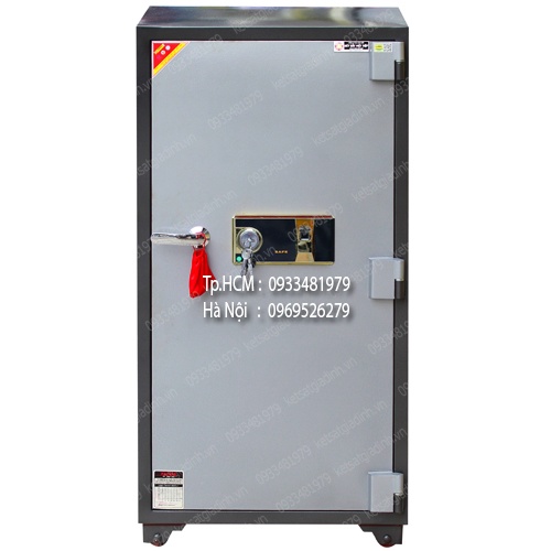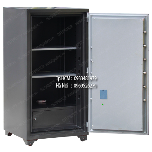 - Thân két được làm từ hai lớp thép cao cấp, kết hợp với lõi bê tông chống cháy đặc biệt, mang lại cảm giác chắc chắn như được đúc từ thép nguyên khối. Cánh cửa két cũng được đổ lõi chống cháy, đi kèm hệ thống chốt nhao bằng thép đặc, đảm bảo khả năng chống cháy và chống cạy phá vượt trội.