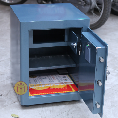 - Két sắt còn được trang bị bộ khóa chìa và bộ khóa điện tử với mật khẩu 8 chữ số, có tính năng báo động khi phát hiện sự xâm nhập trái phép và tính năng ẩn số, giúp bảo vệ thông tin cá nhân của bạn một cách hiệu quả.