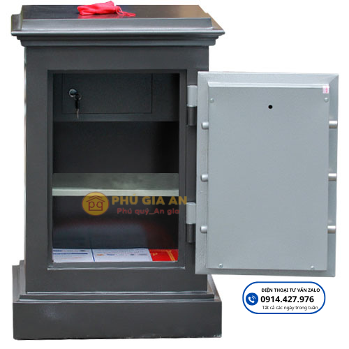 Bên trong két có một ngăn phụ khóa chìa, giúp bạn lưu trữ những vật dụng nhỏ gọn, dễ dàng và bảo mật. Thiết kế cánh cửa với bản lề ngoài, cho phép mở rộng góc cửa, dễ dàng sử dụng mà không gặp vướng víu như các mẫu két có bản lề trong, giúp việc lấy đồ ra vào trở nên thuận tiện hơn.