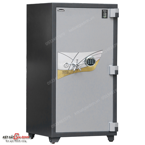 - Cửa két làm từ thép Carbon nguyên tấm dày 12mm (theo tiêu chuẩn JIS Nhật Bản), có độ 01 ngăn kéo có khóa chìa.