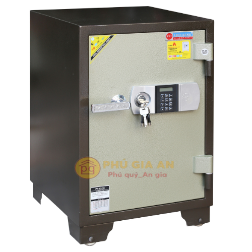 - Chất liệu: Khung vỏ thép 2 lớp + vật liệu chống cháy cao cấp, tạo thành khối vững chắc, khác biệt với két đổ cát thông thường.