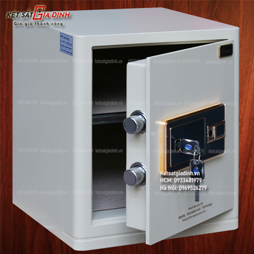 - Chế độ bảo mật 2 lớp: Mở két bằng khóa chìa + đặt vân tay hoặc bấm mã số điện tử.