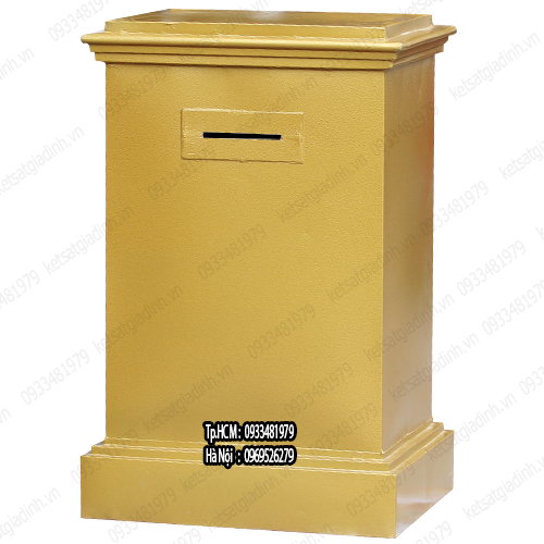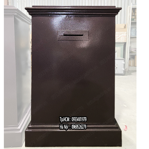 - Mặt lưng két có lỗ nhét tiền nằm ngang, chéo xuống, bên trong có tấm răng cưa chống khều tiền.