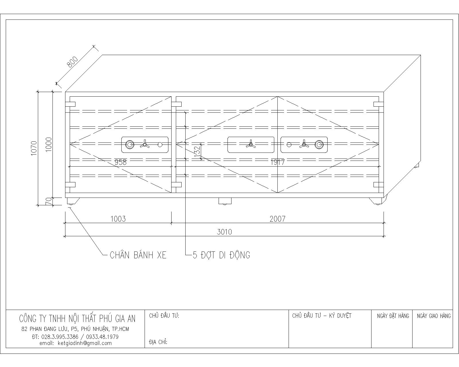 Kích thước: cao1070*dài 3010*sâu800