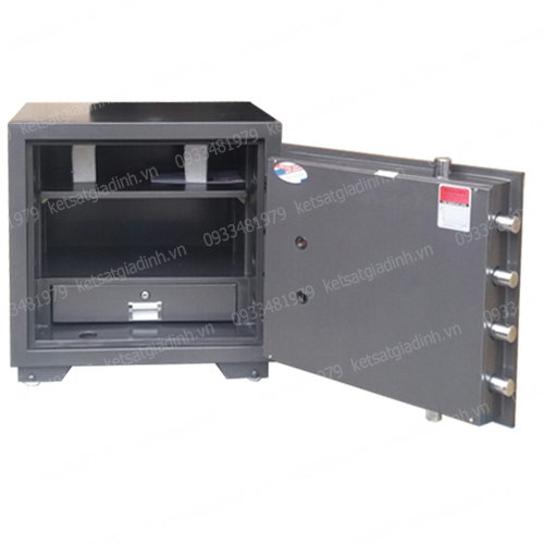 - Thân két: 2 lớp thép mạ điện (GA) kết hợp đá, thép hạt và hỗn hợp cách nhiệt chống đục phá.