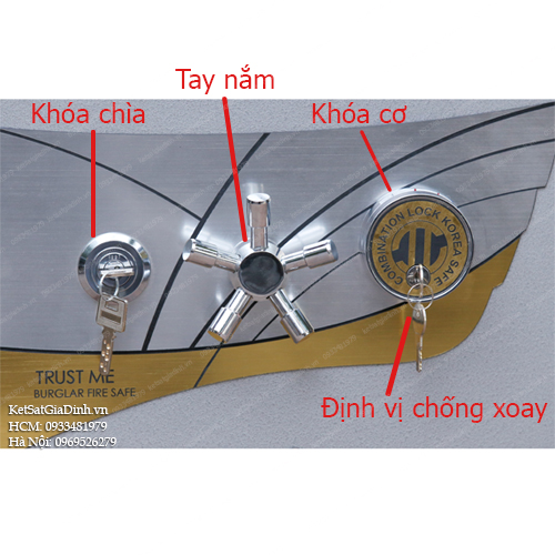 Lưu ý: Để đảm bảo an toàn tối đa, nên sử dụng đồng thời khóa chìa và mã số khi đóng két.