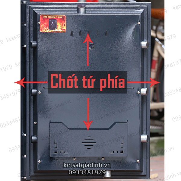 - Công nghệ sản xuất tiên tiến: Két được thiết kế với chất liệu dày dặn từ thân đến cánh, hệ thống chốt 4 hướng, thép gia cố 10mm cho bản lề, giúp chống các nguy cơ cạy phá và cắt bản lề hiệu quả, vượt trội hơn so với các dòng két cũ.