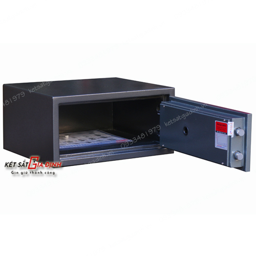 - Thân két được chế tạo từ hai lớp thép mạ điện (GA) chống rỉ, sản xuất bằng công nghệ hiện đại. Phần lõi két đúc từ xi măng và chất chống cháy nguyên khối, đảm bảo độ bền cao.