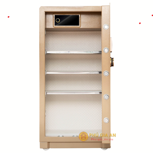 - Ngăn chia linh hoạt: Két có một tấm kính cường lực ở giữa, chia thành các ngăn có thể tháo rời để người dùng dễ dàng sắp xếp tài sản.