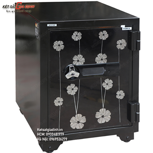 - Bên ngoài két được sơn phủ 3 lớp cao cấp với họa tiết trang trí tinh xảo. Thân két và cánh cửa làm từ thép 2 lớp, kết hợp với ruột đúc đặc và vật liệu chống cháy theo tiêu chuẩn quốc tế (CE, ISO, SP, JIS). Hệ thống chốt an toàn đảm bảo độ chắc chắn và bảo vệ tài sản.