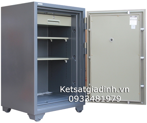 - Cánh cửa và thân két từ thép 2 lớp, kết hợp với ruột đúc đặc vật liệu chống cháy cao cấp theo tiêu chuẩn quốc tế (CE, ISO, SP, JIS). Cánh cửa được trang bị hệ thống chốt an toàn, tạo độ chắc chắn và bảo mật cao, giúp chống cạy phá hiệu quả.
