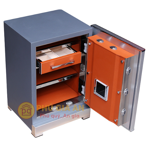 - Cửa két trang bị chốt đa điểm trên cả 4 mặt, tăng cường an toàn.Có thể bắt vít cốđịnh vào tường, chống di chuyển