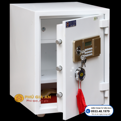 - Két sắt còn tích hợp hệ thống báo động âm thanh khi nhập sai mã số hoặc có hành vi dịch chuyển, cạy phá, giúp người sử dụng an tâm khi vắng nhà.