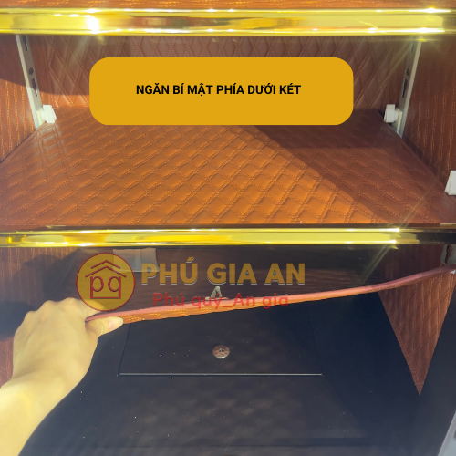 - Khoang chứa 3 ngăn lớn, phù hợp cất giấy tờ, tiền bạc, vật có giá trị . Hộc kéo bọc nhung dành riêng cho trang sức 1 đợt chia ngăn di động . Ngăn hầm bí mật ở đáy két, sử dụng khóa chìa cơ riêng
