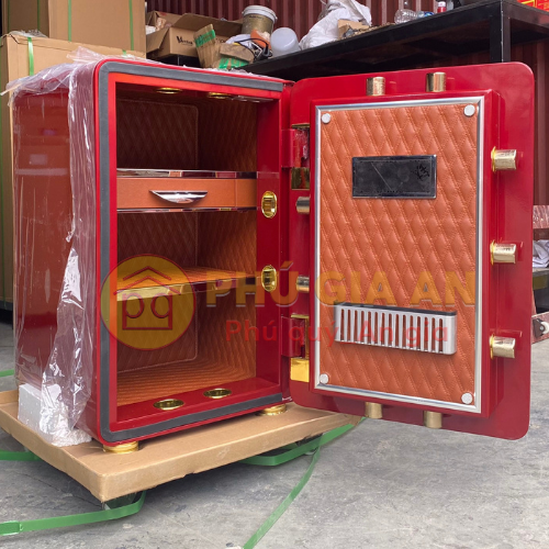 - Hệ thống khóa mở két: Kim loại mạ vàng và kính cường lực.