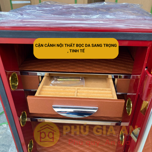 - Bố cục rộng rãi 2 ngăn lớn để giấy tờ, tiền bạc, tài sản giá trị. Hộc kéo bọc nhung dành riêng để cất giữ trang sức.