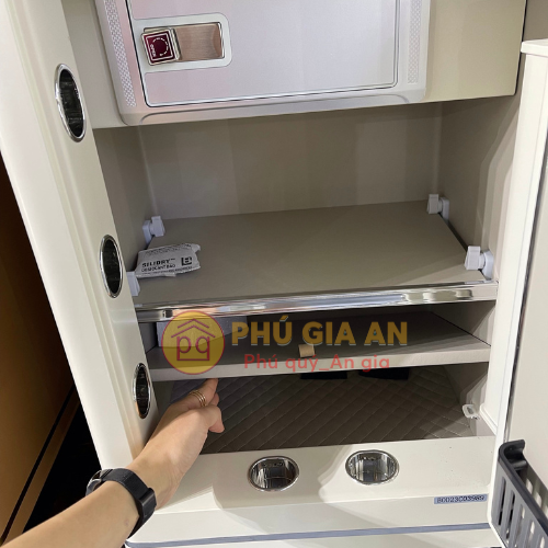 - Nội thất sang trọng Thiết kế tinh tế, đẳng cấp, vượt xa các dòng két sắt thông thường. Bọc da cao cấp, trần quả trám tỉ mỉ, tạo sự sang trọng cho không gian.