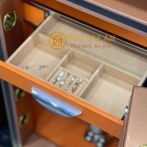 - Bố cục rộng rãi 2 ngăn lớn để giấy tờ, tiền bạc, tài sản giá trị. Hộc kéo bọc nhung dành riêng để cất giữ trang sức.