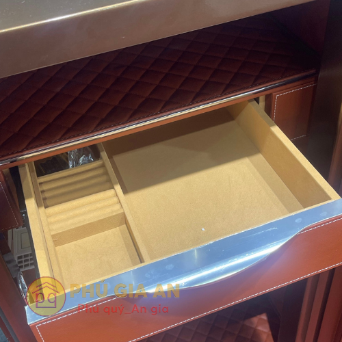 - Nội thất sang trọng với sơn Nano phủ bóng 3 lớp, vách ngăn và thành két bọc da PU cao cấp, chia thành nhiều ngăn bao gồm ngăn trang sức và ngăn bí mật.