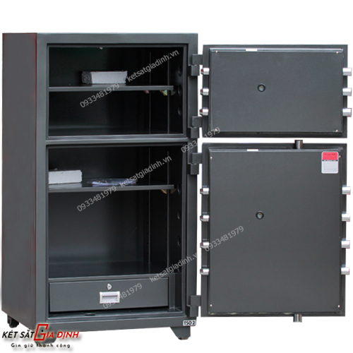 - Loại sản phẩm: Két sắt hai tầng, khóa vân tay + mã số, chống cháy.
