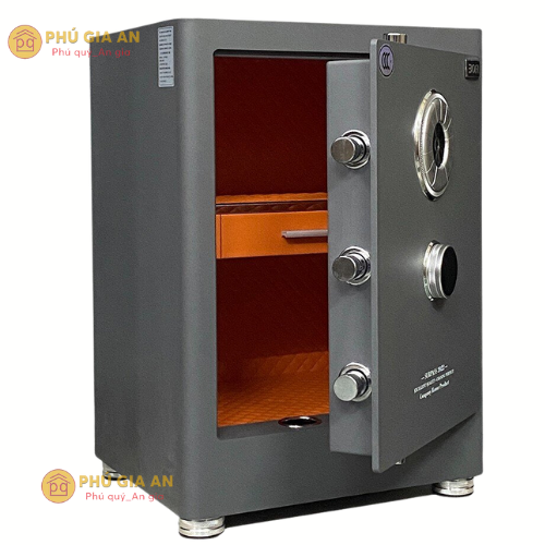 - 3 lớp bảo mật: Kết hợp khóa chìa, vân tay và mã số điện tử (phải sử dụng chìa khóa, vân tay và mật mã để mở két).