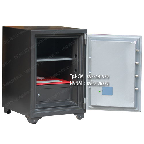 - Bên trong két có một ngăn phụ có khóa riêng biệt để bảo quản tài sản quý giá, cùng với một đợt di động để chia ngăn giấy tờ một cách khoa học và gọn gàng.